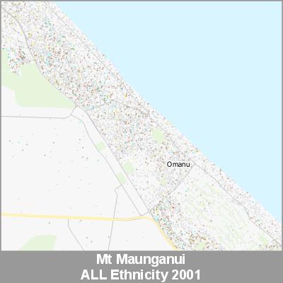 2001 Census Meshblock Data visualised as randomised point data based on the meshblock count of the chosen category, Ethnicity.