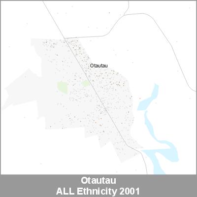 2001 Census Meshblock Data visualised as randomised point data based on the meshblock count of the chosen category, Ethnicity.