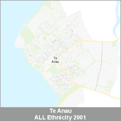 2001 Census Meshblock Data visualised as randomised point data based on the meshblock count of the chosen category, Ethnicity.