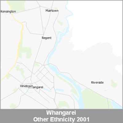 2001 Census Meshblock Data visualised as randomised point data based on the meshblock count of the chosen category, Ethnicity.