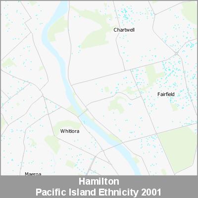 2001 Census Meshblock Data visualised as randomised point data based on the meshblock count of the chosen category, Ethnicity.
