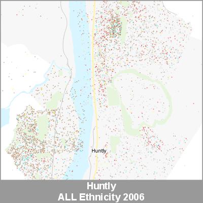 2006 Census Meshblock Data visualised as randomised point data based on the meshblock count of the chosen category, Ethnicity.