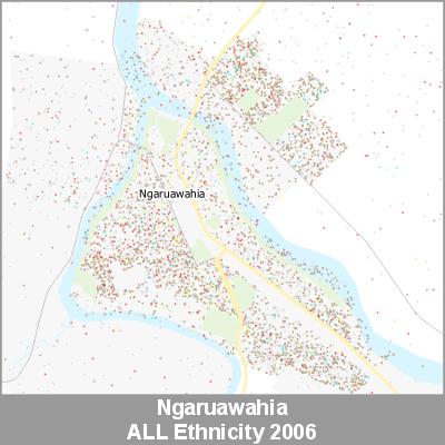 2006 Census Meshblock Data visualised as randomised point data based on the meshblock count of the chosen category, Ethnicity.