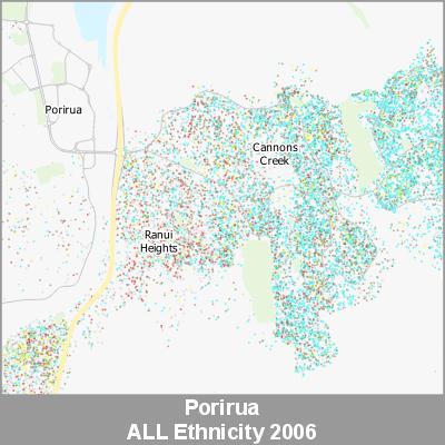 2006 Census Meshblock Data visualised as randomised point data based on the meshblock count of the chosen category, Ethnicity.