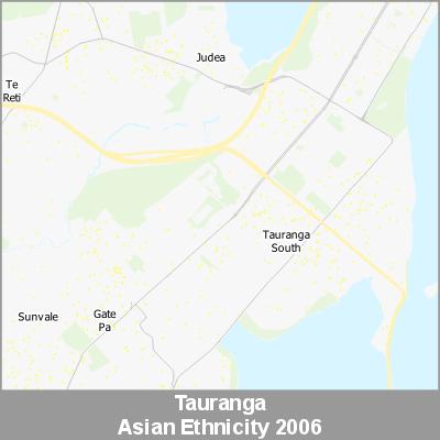 2006 Census Meshblock Data visualised as randomised point data based on the meshblock count of the chosen category, Ethnicity.