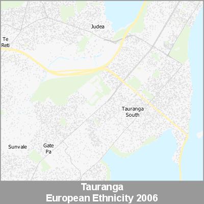 2006 Census Meshblock Data visualised as randomised point data based on the meshblock count of the chosen category, Ethnicity.