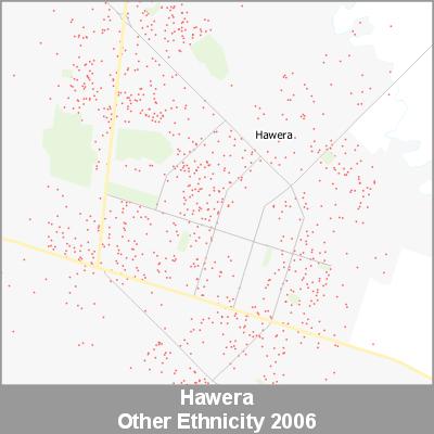 2006 Census Meshblock Data visualised as randomised point data based on the meshblock count of the chosen category, Ethnicity.