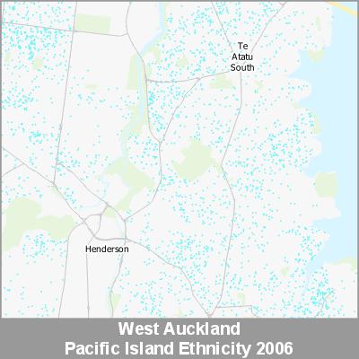 2006 Census Meshblock Data visualised as randomised point data based on the meshblock count of the chosen category, Ethnicity.