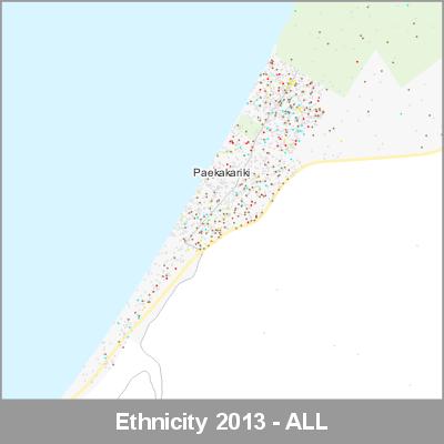 2013 Census Meshblock Data visualised as randomised point data based on the meshblock count of the chosen category, Ethnicity.