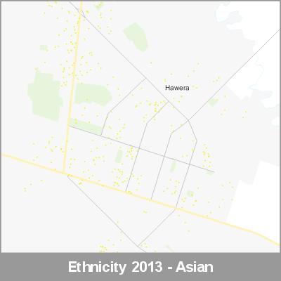 2013 Census Meshblock Data visualised as randomised point data based on the meshblock count of the chosen category, Ethnicity.