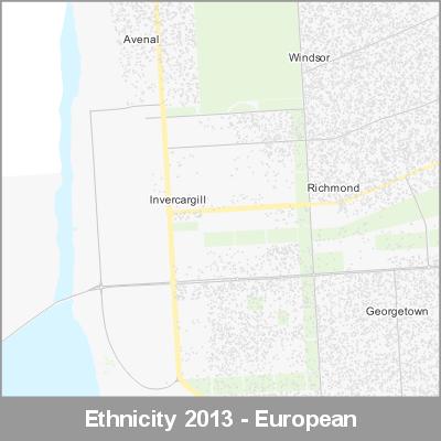 2013 Census Meshblock Data visualised as randomised point data based on the meshblock count of the chosen category, Ethnicity.