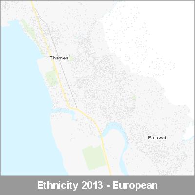 2013 Census Meshblock Data visualised as randomised point data based on the meshblock count of the chosen category, Ethnicity.