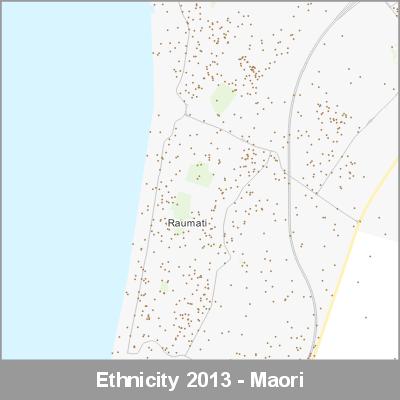 2013 Census Meshblock Data visualised as randomised point data based on the meshblock count of the chosen category, Ethnicity.