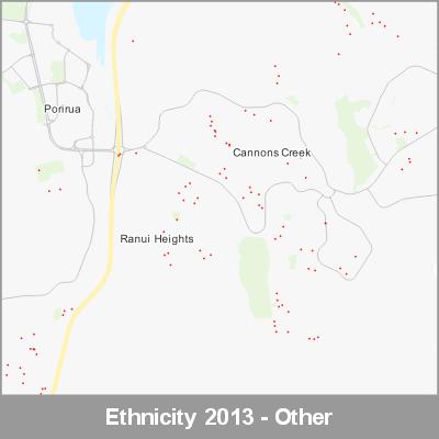 2013 Census Meshblock Data visualised as randomised point data based on the meshblock count of the chosen category, Ethnicity.