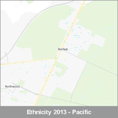 2013 Census Meshblock Data visualised as randomised point data based on the meshblock count of the chosen category, Ethnicity.