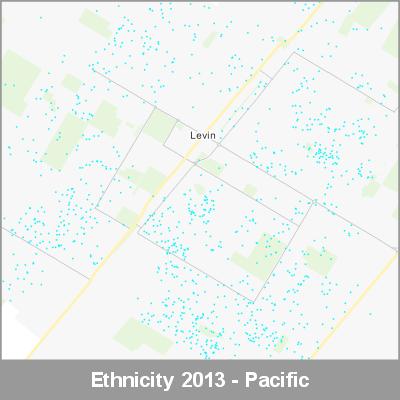 2013 Census Meshblock Data visualised as randomised point data based on the meshblock count of the chosen category, Ethnicity.