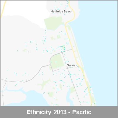 2013 Census Meshblock Data visualised as randomised point data based on the meshblock count of the chosen category, Ethnicity.