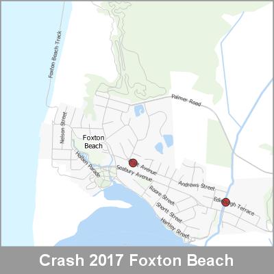 2017 NZTA CAS Data showing Crashes in Foxton Beach