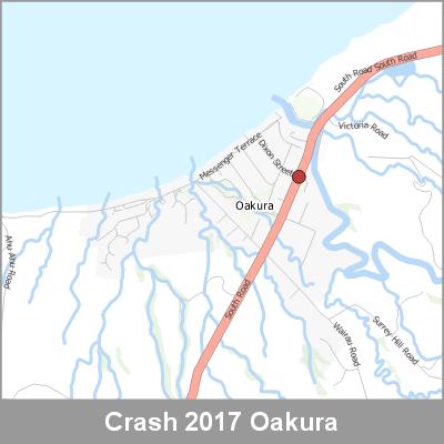 2017 NZTA Crash Analysis System (CAS) showing the location of vehicle crashes visualised as point cluster data based on crash location proximity.