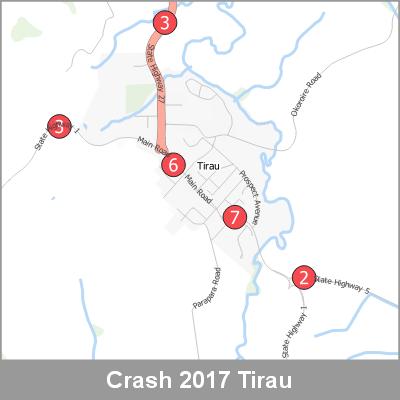 2017 NZTA Crash Analysis System (CAS) showing the location of vehicle crashes visualised as point cluster data based on crash location proximity.