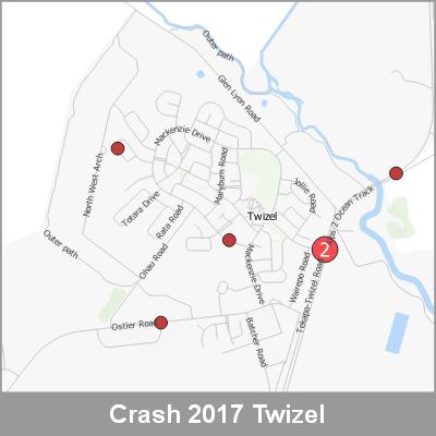 2017 NZTA Crash Analysis System (CAS) showing the location of vehicle crashes visualised as point cluster data based on crash location proximity.