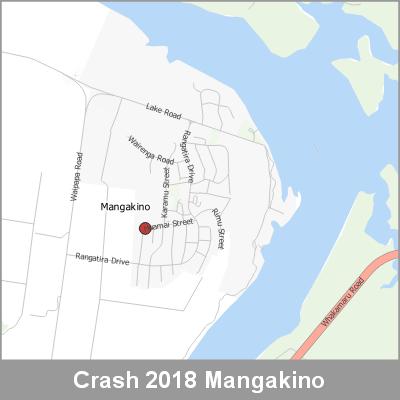 2018 NZTA Crash Analysis System (CAS) showing the location of vehicle crashes visualised as point cluster data based on crash location proximity.