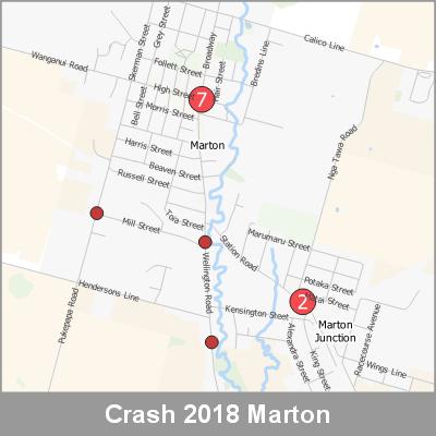 2018 NZTA Crash Analysis System (CAS) showing the location of vehicle crashes visualised as point cluster data based on crash location proximity.