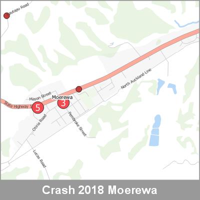 2018 NZTA CAS Data showing Crashes in Moerewa