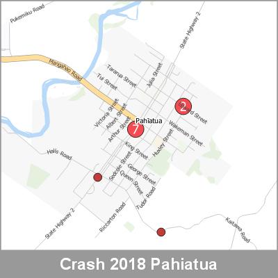 2018 NZTA Crash Analysis System (CAS) showing the location of vehicle crashes visualised as point cluster data based on crash location proximity.