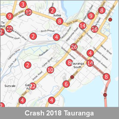 2018 NZTA CAS Data showing Crashes in Tauranga