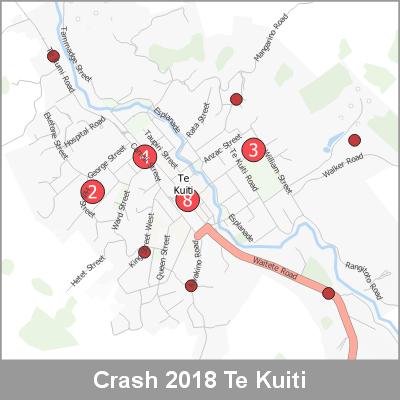 2018 NZTA CAS Data showing Crashes in Te Kuiti