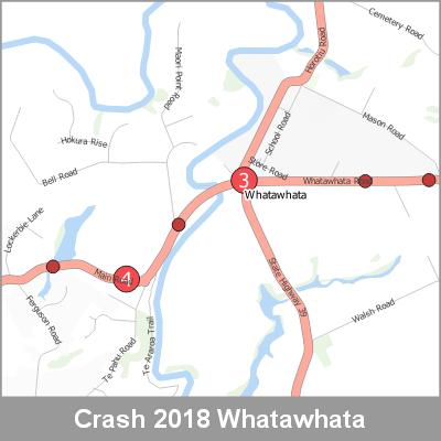 2018 NZTA Crash Analysis System (CAS) showing the location of vehicle crashes visualised as point cluster data based on crash location proximity.