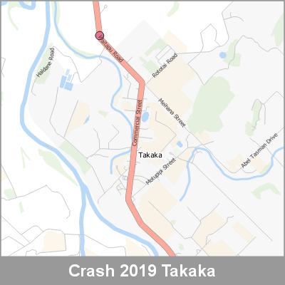 2019 NZTA Crash Analysis System (CAS) showing the location of vehicle crashes visualised as point cluster data based on crash location proximity.