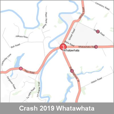 2019 NZTA Crash Analysis System (CAS) showing the location of vehicle crashes visualised as point cluster data based on crash location proximity.