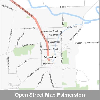 2020 Street Map data processed from the New Zealand Open Street Map source.